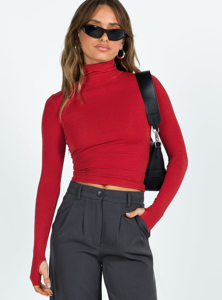 Elysium Long Sleeve Turtleneck Top Red has a rating of 4.7 stars based on 18 reviews.