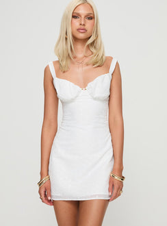 front view of model wearing Princess Polly Faucher Mini Dress White Sweetheart Neckline