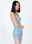 side view of model wearing Princess Polly Fay Mini Dress Blue Sweetheart Neckline