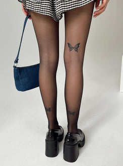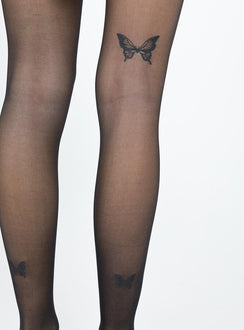Stockings Butterfly graphic print High waisted fit Good stretch