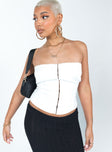front view of model wearing Princess Polly Fierra Corset White Sleeveless Square Neck