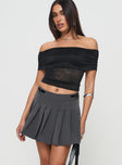 - Pleated, buckle detail at sides at waist, invisible zip fastening at side