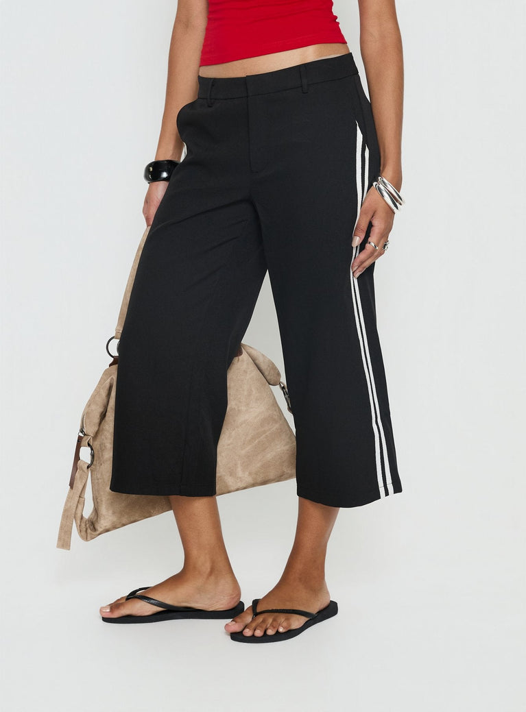 - Long capri pants with stripe side detail