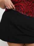 front view of model wearing Princess Polly Gigi Skort Black Curve High Waisted Shorts