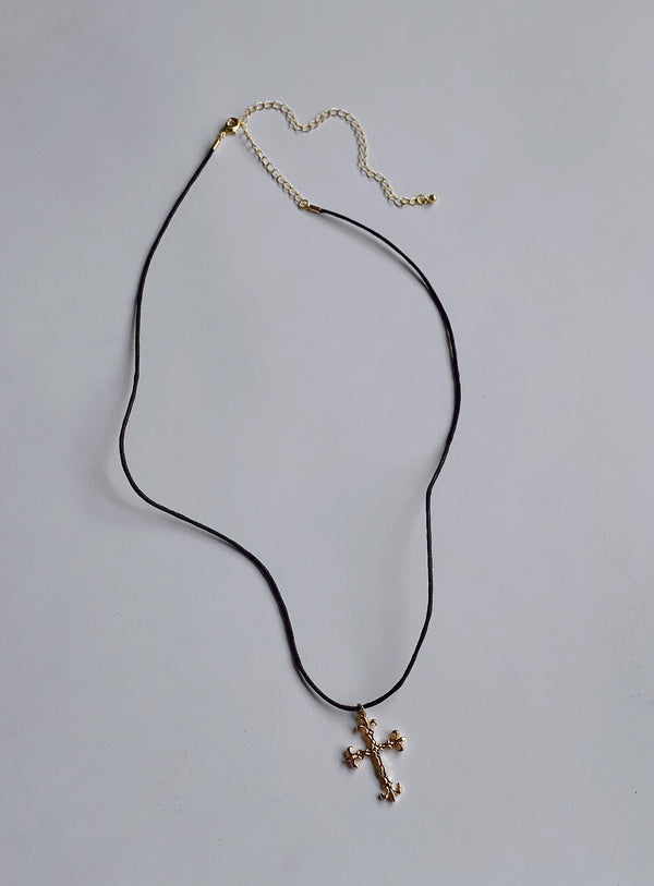 Necklace Faux suede and ribbon material Flower detail Tie fastening