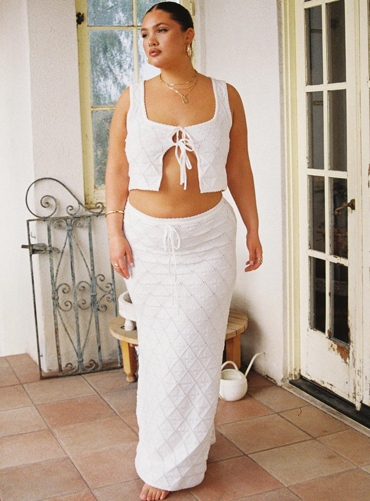 - Knit material, elasticated drawstring waist, lettuce edge hem