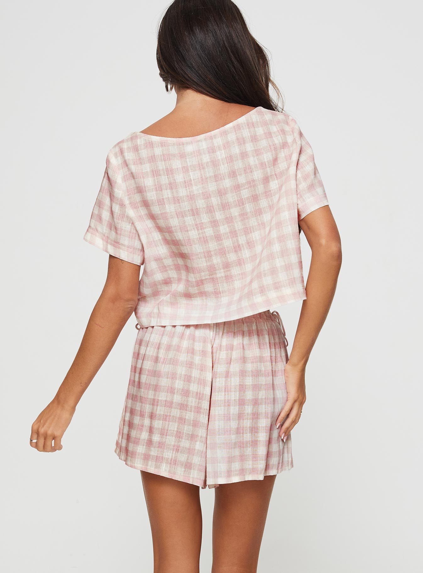 https://www.princesspolly.com.au/products/golden-palms-linen-sleep-shorts-pink-white