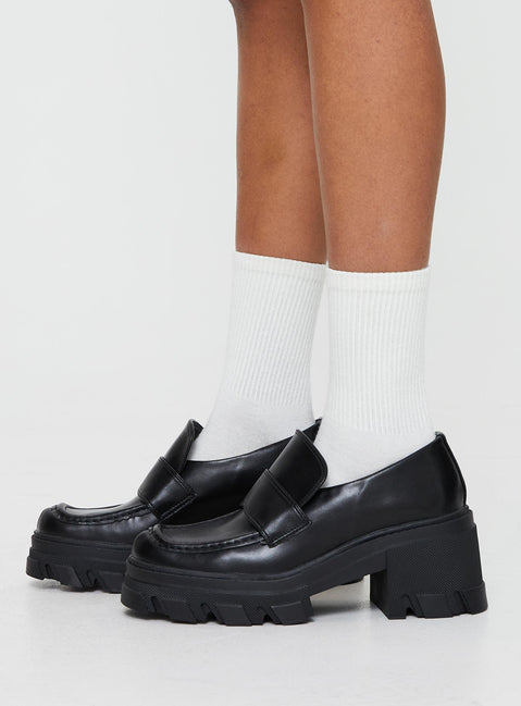 Faux leather loafer Rounded toe, platform base, padded footbed, treaded sole