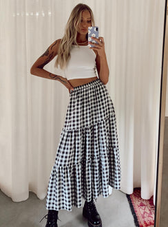 front view of model wearing Princess Polly Hale Midi Skirt Black / White