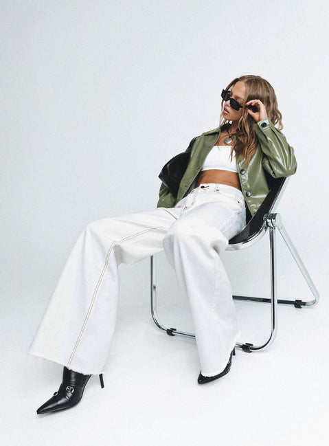 - Pointed collar, button fastening at front, twin hip pockets, single button cuff
