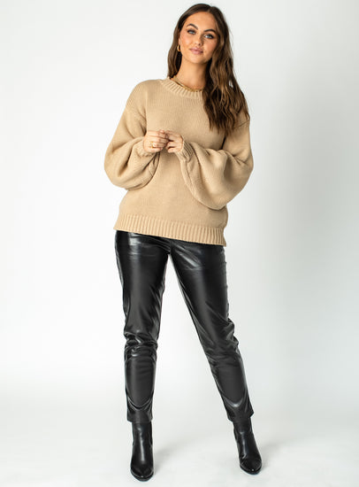 Harmony balloon sleeve knit sweater dark brown