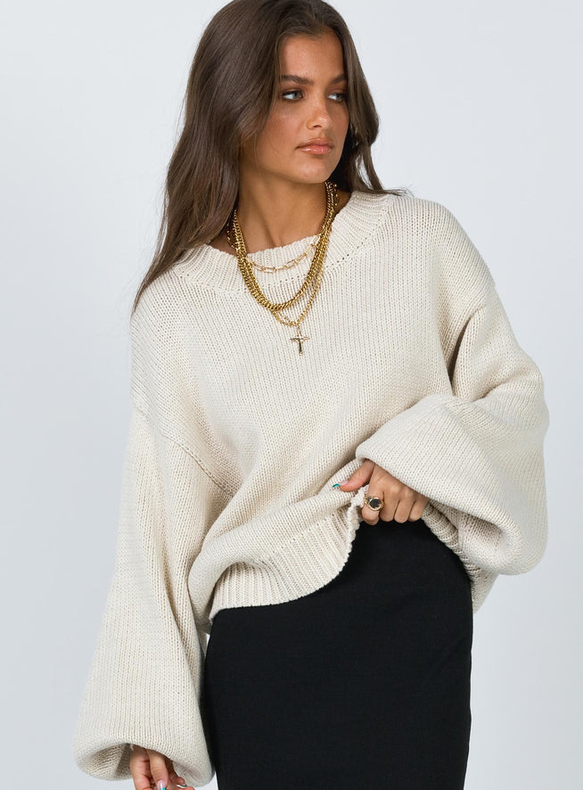 Harmony Balloon Sleeve Knit Sweater Beige has a rating of 4.8 stars based on 630 reviews.