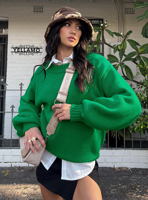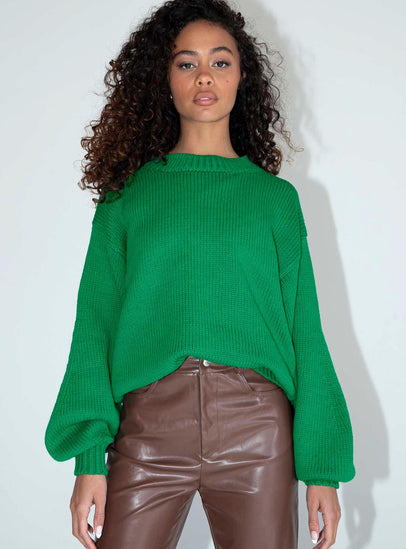 Harmony Balloon Sleeve Knit Sweater Green has a rating of 5.0 stars based on 5 reviews.