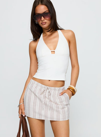 - Stripe print, elasticated waist, tie fastening, mid-rise fit