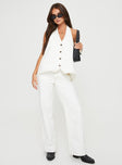 side view of model wearing Princess Polly Hills Halter Top Porcelain Sleeveless Plunger