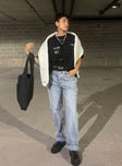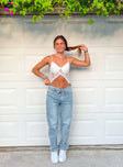 - Asymmetric low-rise straight leg denim jeans