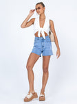 front view of model wearing Princess Polly Hutington Top Cream Sleeveless Plunger