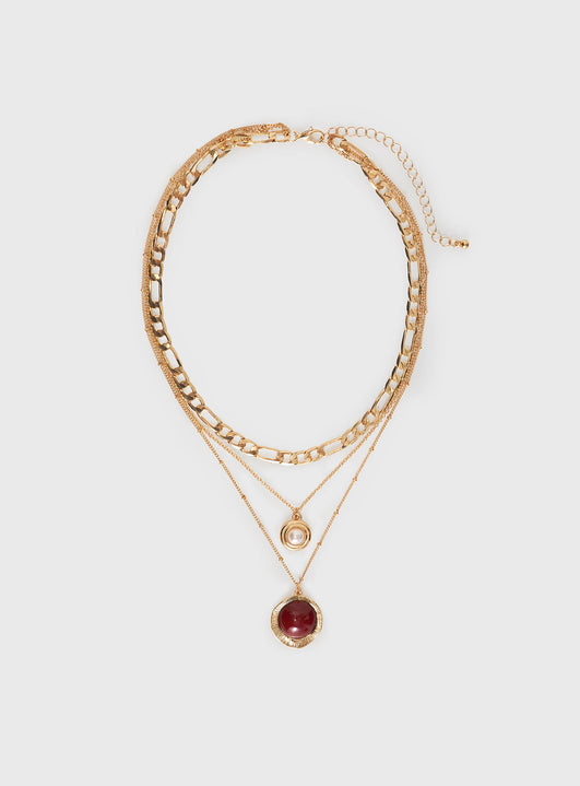 Necklace Three-tiered style, gold-toned, gemstone & pearl detail Princess Polly Lower Impact Necklace Three-tiered style, gold-toned, gemstone & pearl detail Princess Polly Lower Impact
