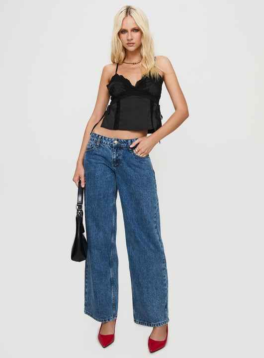 side view of model wearing Princess Polly Isolind Top Black Sleeveless V-Neck