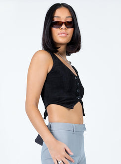 side view of model wearing Princess Polly Jalisa Top Black Sleeveless Scoop Neck