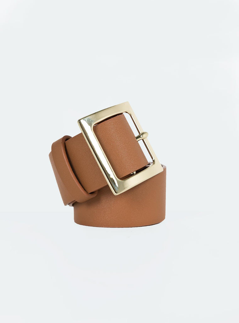 Waist belt Faux leather material Square shaped buckle Gold toned hardware
