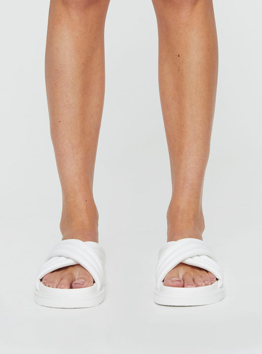 - Strappy upper, slip on design, padded footbed, treaded sole