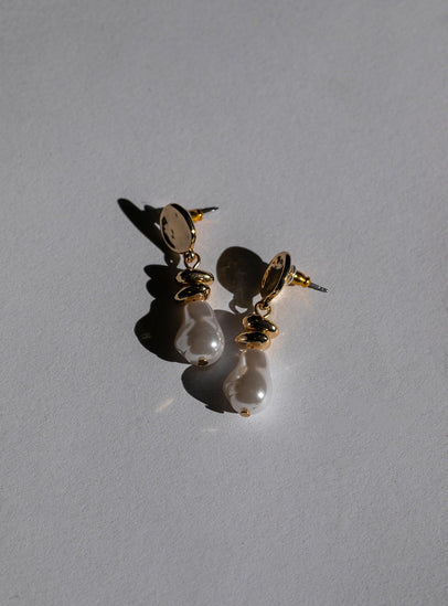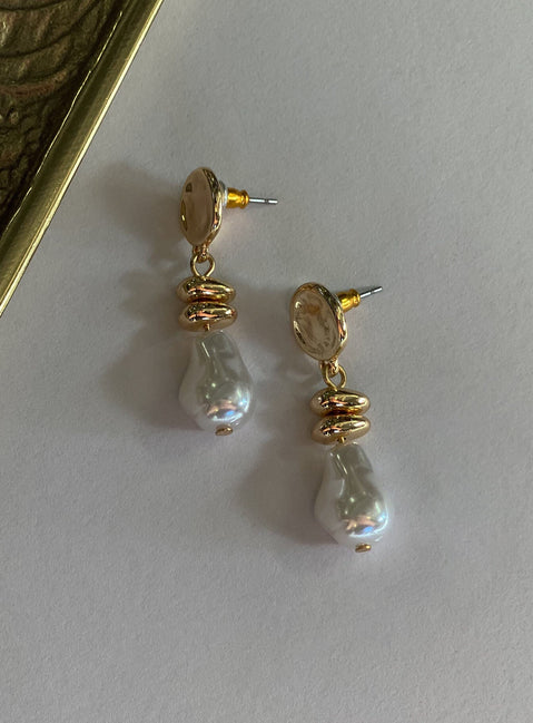 Karolina Pearl Drop Earrings Gold / White has a rating of 5.0 stars based on 4 reviews.