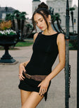 back view of model wearing Princess Polly Karreey Mini Dress Black Crew Neck
