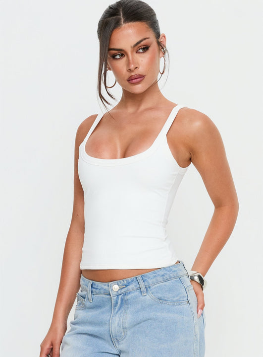 - Scoop neckline, fixed straps, soft fabric