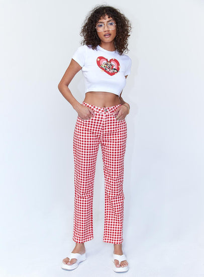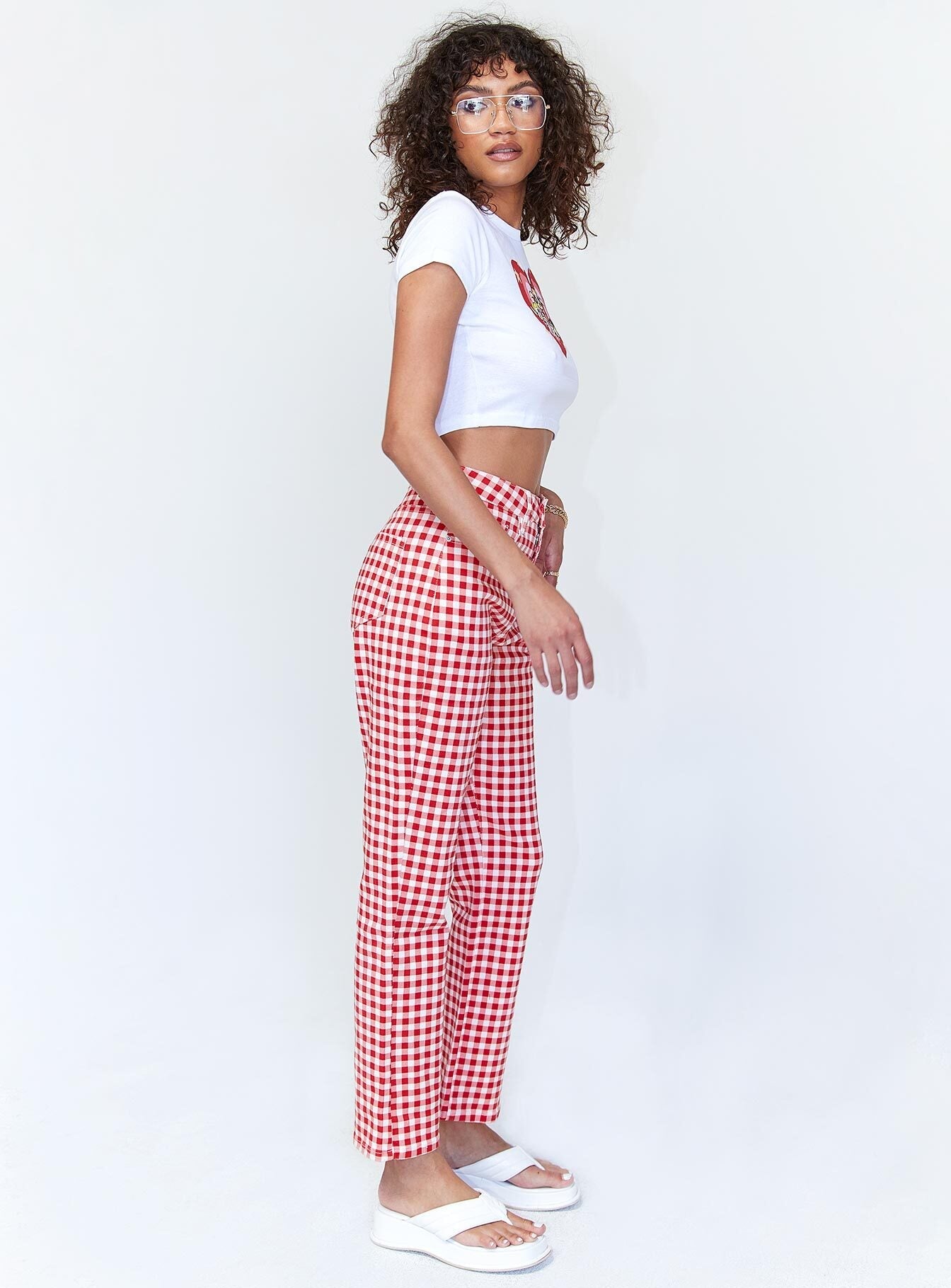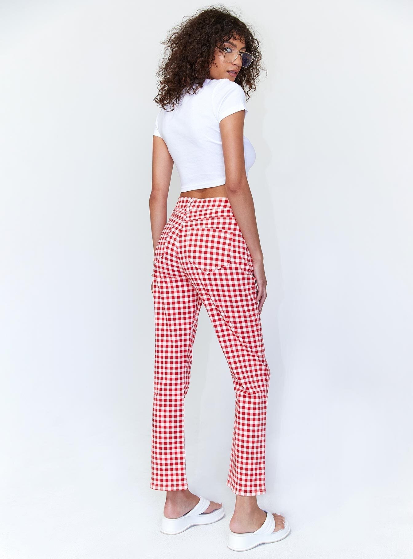 Kendra Gingham Denim Jeans Red has a rating of 4.3 stars based on 6 reviews.
