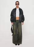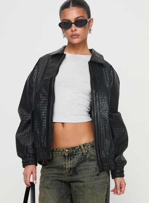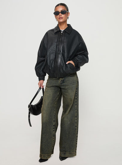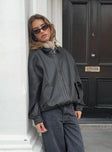 - Woven oversized faux leather bomber jacket