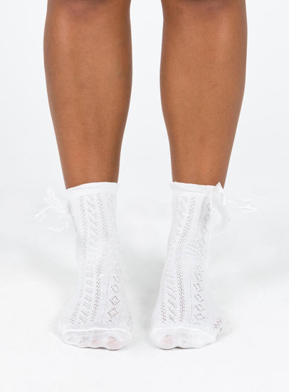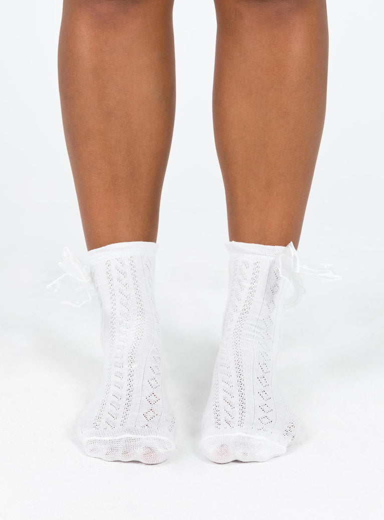 White socks Crew style Bow detail Good stretch Frill cuff