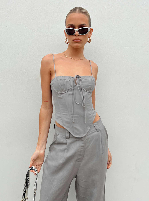 Front view of model wearing  front Princess Polly  La Quinta Pant Grey