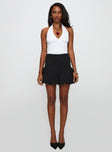 - Pleats detail, invisible zip fastening at side, mid-rise fit