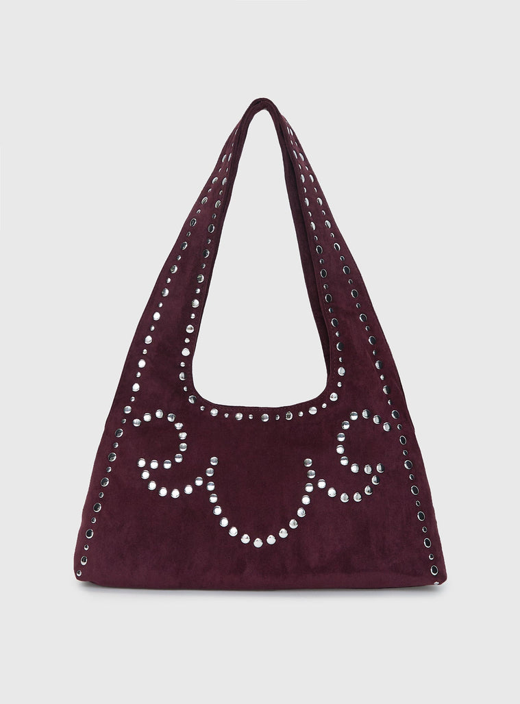 Lemoni Faux Suede Stud Bag Burgundy has a rating of 5.0 stars based on 5 reviews.