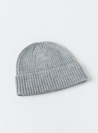 Knit beanie Foldable brim Thick knit material Pinched top Double lined