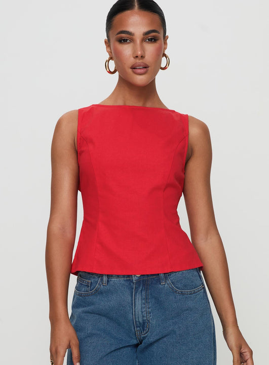 front view of model wearing Princess Polly Lilitina Top Red Sleeveless High Neck