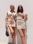 Lillie Long Sleeve Mini Dress Beige has a rating of 4.4 stars based on 74 reviews.