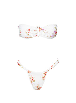 - Floral print, high cut, cheeky cut bottoms, adjustable coverage