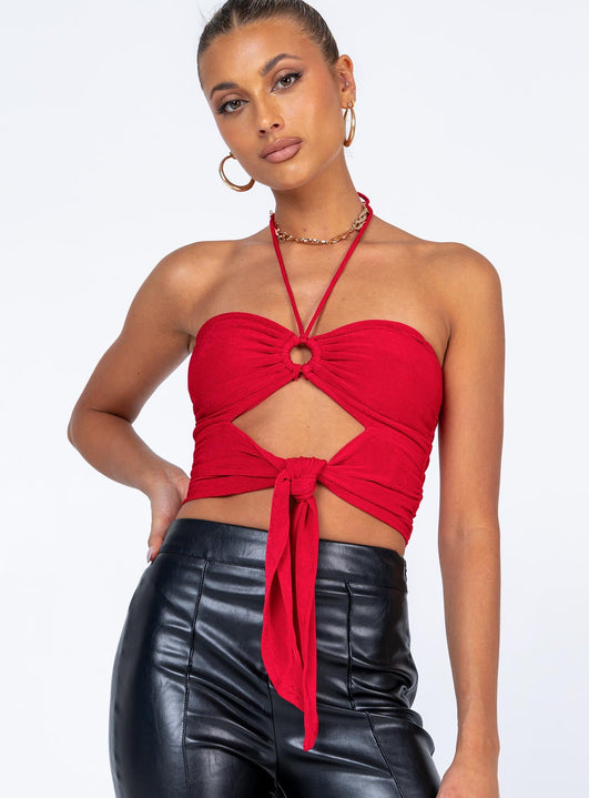 Loriella Ring Detail Crop Top Red has a rating of 4.9 stars based on 34 reviews.