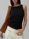 side view of model wearing Princess Polly Lose Your Number High Neck Top Black Sleeveless Crew Neck