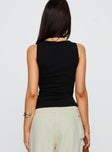 back view of model wearing Princess Polly Lose Your Number High Neck Top Black Sleeveless Crew Neck