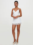 front view of model wearing Princess Polly Love Is Alive Lace Mini Dress White Plunger