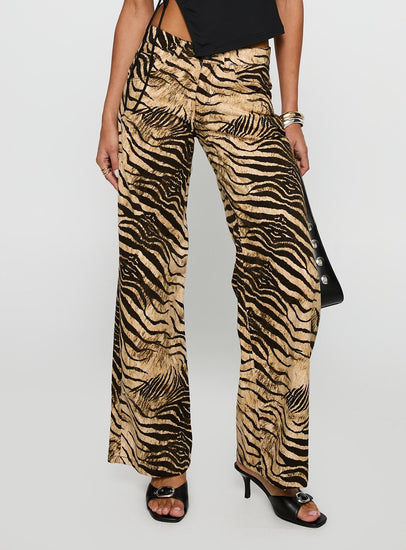 - Multi-print, belt looped waist, button & zip closure, five pockets