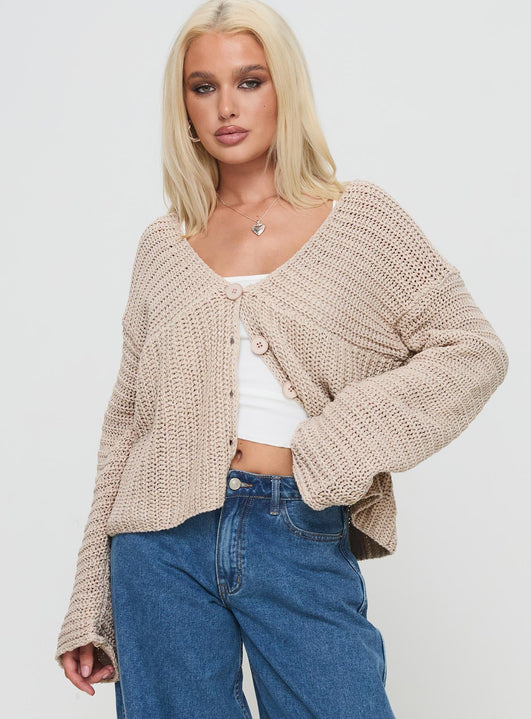 product Princess Polly Maela Knit Cardigan Mocha Cropped