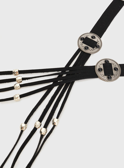 Faux suede belt Silver-toned hardware, fringe ends, tie fastening, adjustable length