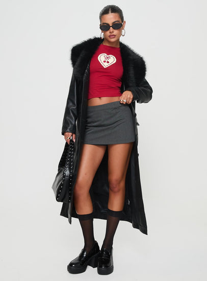- Faux fur colour, twin hip pockets, button & belt fastening at waist