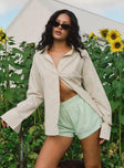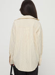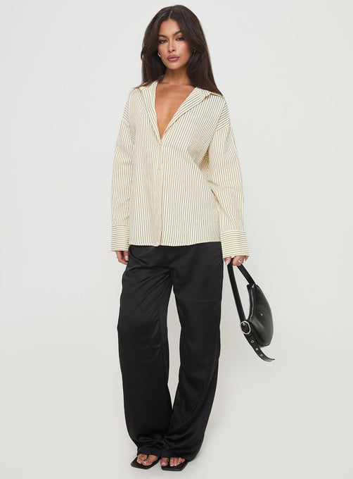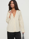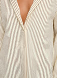 product Princess Polly Mallin Shirt Cream/Brown Stripe Full Sleeves V-Neck