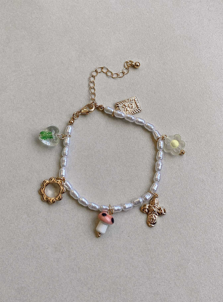 Bracelet Gold-toned Pearl detail Drop charms Lobster clasp fastening