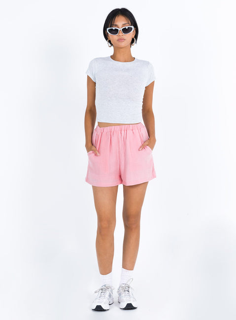 Pink shorts Muslin look material  High waisted  Elasticated waistband  Twin hip pockets